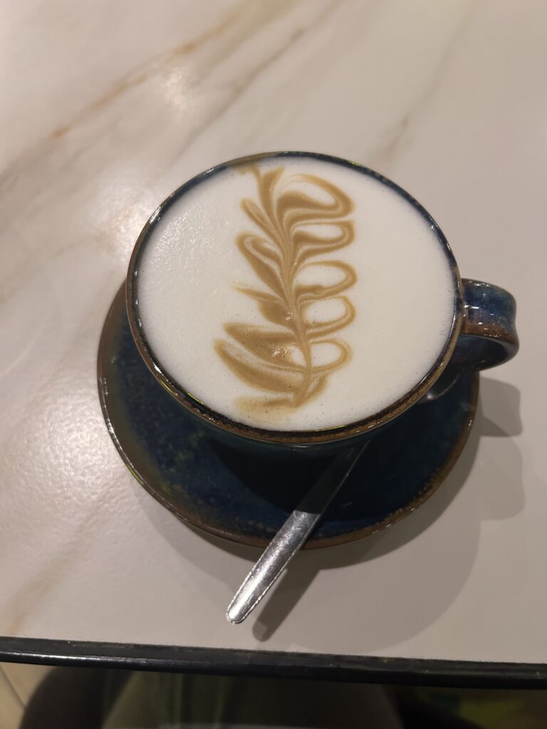 So weit so gut. Ich bin dann in das Café gegangen, indem ich auch schon neulich diesen unfassbar guten Brownie gegessen hatte, weil ich wieder darauf Lust hatte und wusste, dass es eine ✨Limited Edition ✨ ist und ich nicht verpassen wollte den nochmal zu probieren. Als ich dann im Café saß war alles gut. Ich habe (ganz alleine) bestellt (ich weiß – das ist echt krass für meine Verhältnisse) und habe meinen Lieblingspodcasts mit meinen Kopfhörern gehört während ich meinen Kaffee getrunken und meinen Brownie gegessen habe.