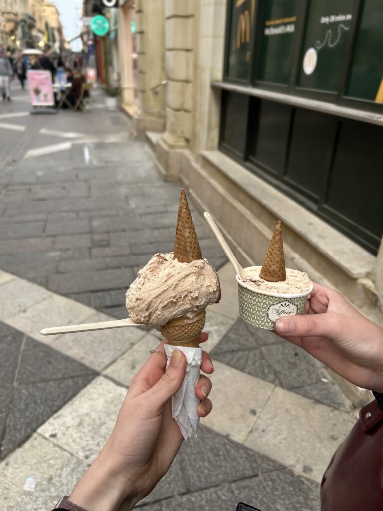 Long Story short: Wir haben uns dann (nach einer Stunde nutzlosem rumfahren) in Valetta getroffen und haben uns ein Café gesucht. Das Café, das wir dann gefunden haben, war total süß eingerichtet und die Atmosphäre dort war auch sehr gut. An sich kann ich inzwischen ziemlich gut selber bestellen, aber sobald jemand anderes dabei ist (vor alle jemand deutsches) verfalle ich wieder in mein ursprüngliches Muster..Sprich: Ich will nicht bestellen und verhasple mich auch ungefähr 12 mal während ich mir einen einfachen Eiskaffee bestelle. Zusätzlich zu dem Kaffee haben wir uns dann auch noch zwei Brigadeiros gekauft (brasilianische Süßigkeit). Wir haben beide zum ersten mal Brigadeiros gegessen und waren auch beide positiv überrascht, wie gut sie geschmeckt haben – ist also ebenfalls zu empfehlen.