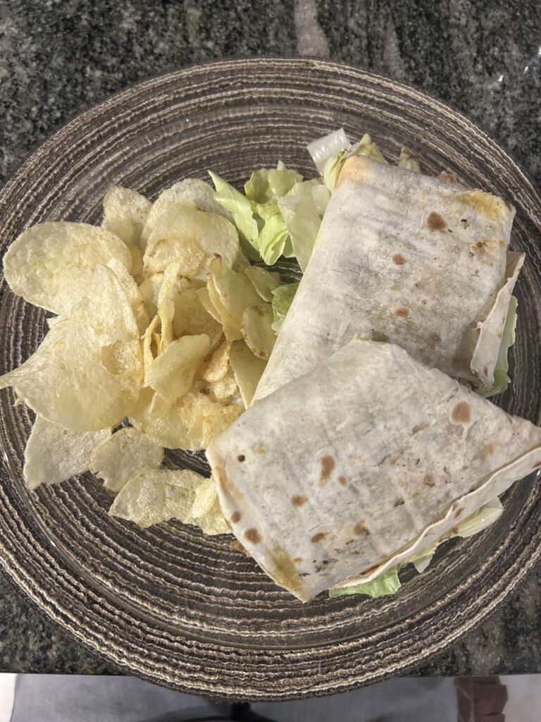 Abends habe ich dann (sehr gesundes) Abendessen gegessen (siehe Beweisstück A – das Bild unten) und habe noch geduscht (was erstaunlich gut getan hat).