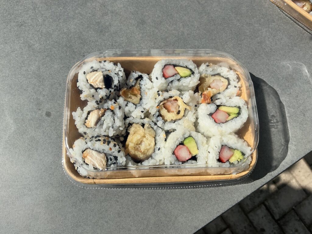 Am nächsten Tag (Mittwoch) ging es mir morgens direkt viel besser und ich war unfassbar dankbar dafür, dass meine Halsschmerzen fast komplett weg waren. Ich habe mich sogar mal wieder richtig auf den Tag gefreut, weil wir das Hospitality Outing an dem Tag hatten und ich mich schon darauf gefreut habe, das Sushi zu machen. Die ersten 4 Schulstunden waren dann auch oke (mit der Aussicht auf mein Sushi) und dann sind wir mit einem der School Vans zum Restaurant gefahren. Der Kurs ging dann auch nur ca. 60 Minuten aber es hat auf eden Fall sehr viel Spaß gemacht. Auch wenn mein Sushi nicht perfekt geworden ist, ist es trotzdem unfassbar lecker gewesen und ich war trotzdem sehr stolz darauf, wie gut ich das hinbekommen habe (siehe Beweisstück A).