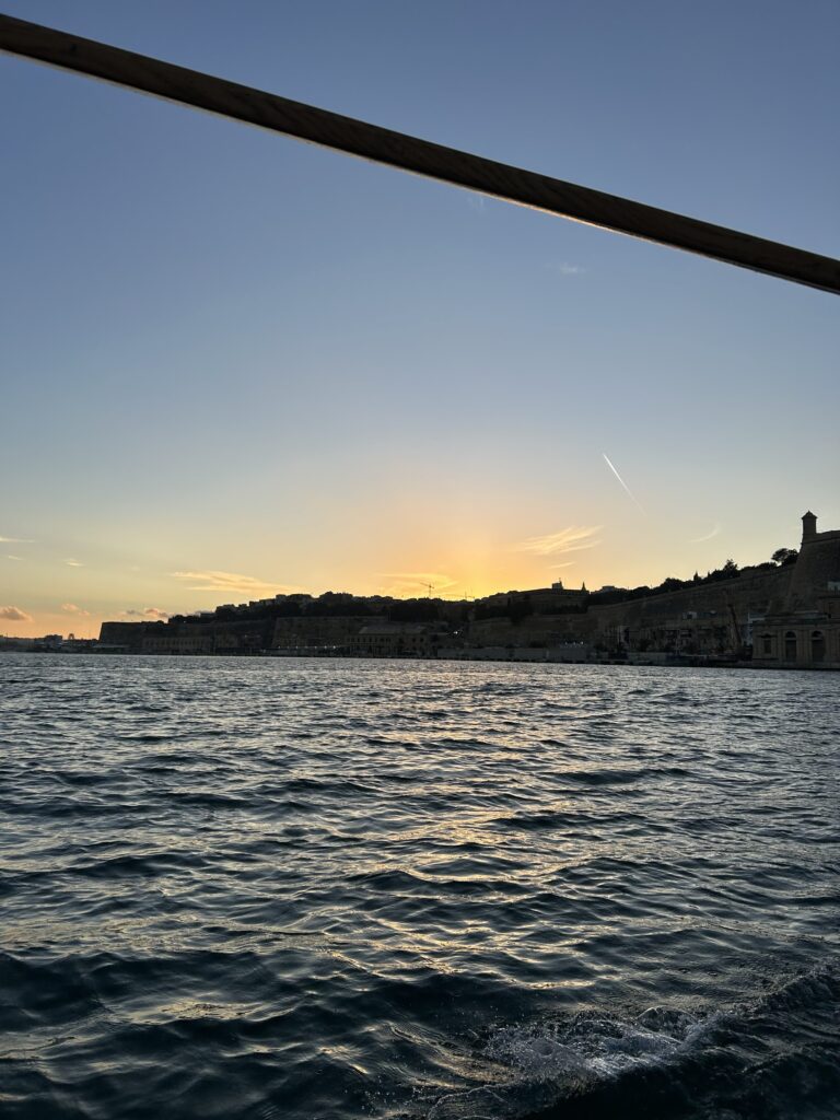 Am Montag der vergangenen Woche bin ich nach der Schule nach Valetta um mich dort mit Lea und Lisa zu treffen, weil wir uns die Three Cities of Malta anschauen wollten. Wir sind dann einmal am Rand von Valletta entlang gelaufen und haben uns dann von einem der traditionell maltesischen Boote einmal quer zur anderen Seite übers Meer bringen lassen. Während der Fahrt ist schon so langsam die Sonne untergegangen und deswegen stand die Sonne wirklich total schön am Himmel.