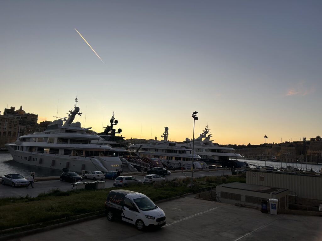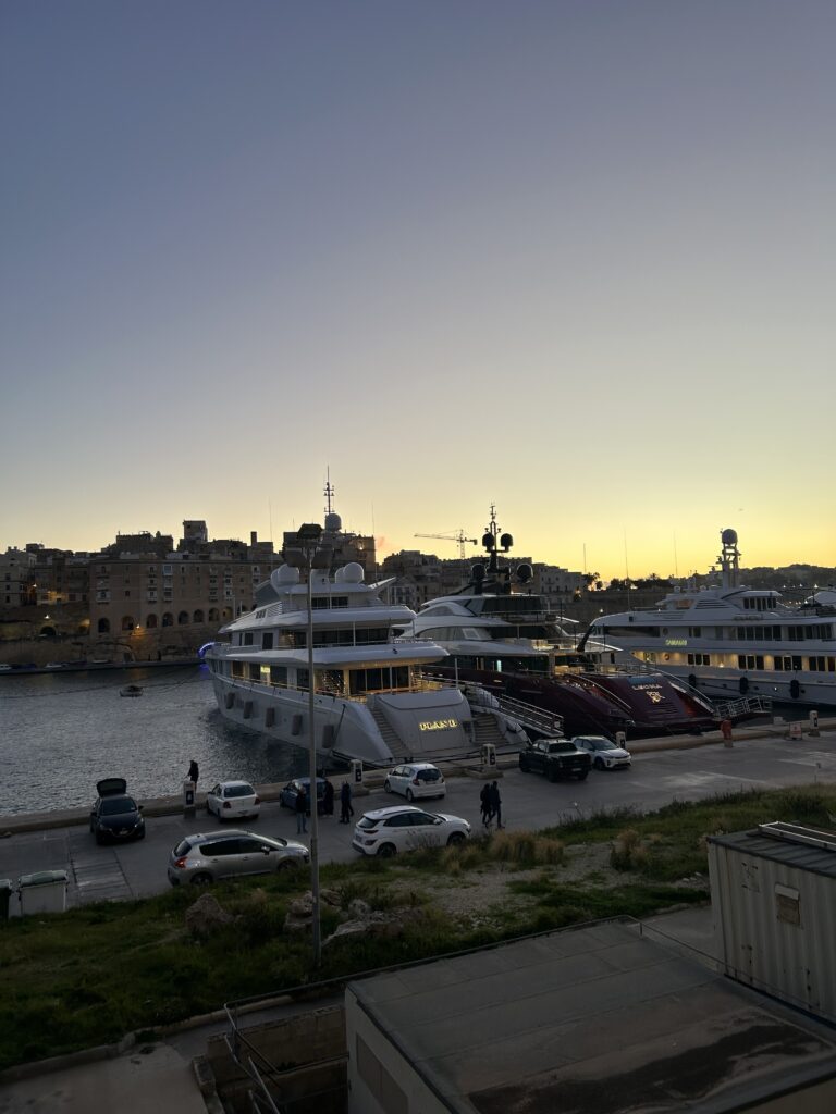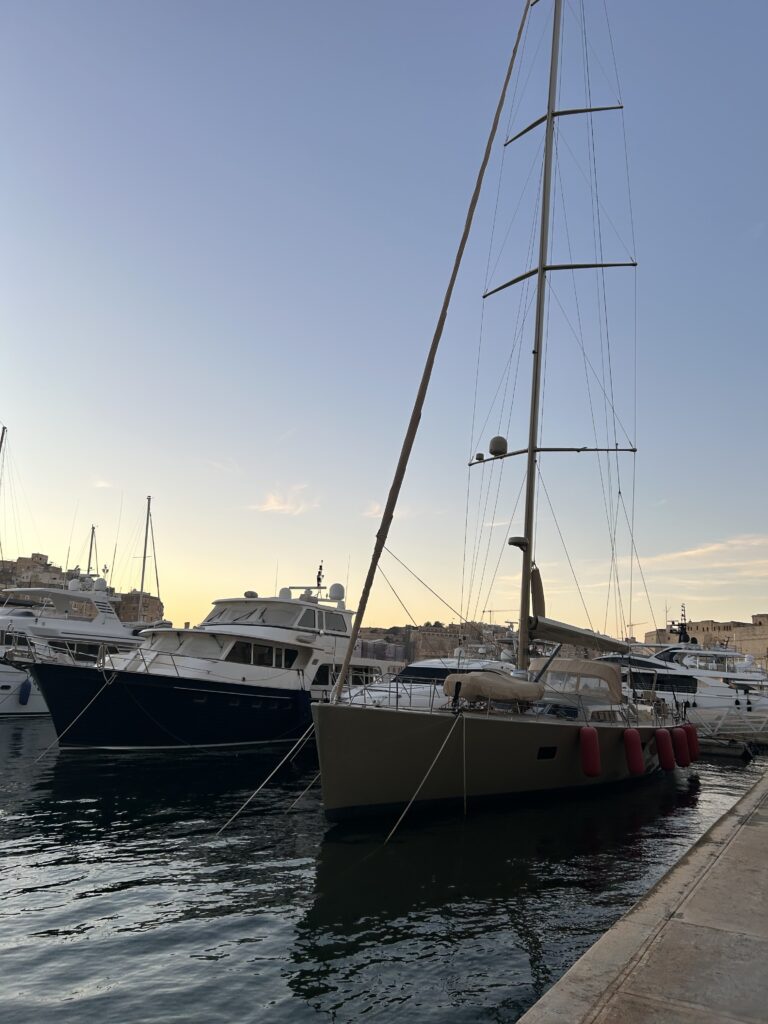 Als wir dann auf der anderen Seite in Birgu angekommen sind, ist uns eventuell aufgefallen, dass wir gar keine Ahnung haben, was die Three Cities überhaupt sind und haben dann kurzerhand beschlossen, einfach rumzulaufen und die Gegend zu erkunden. Der Hafen dort war unbeschreiblich hübsch und an dem Abend war es eine wirklich gute Temperatur um einfach draußen rumzulaufen. Wir haben dann auch einen Raum in einer Mauer entdeckt und sind da einfach mal rein gelaufen (keine Sorge, das war nichts illegales). In dem Hafen waren viele größere Boote und sogar richtige Yachten – da kam bei mir schon der ein oder andere Traumgedanke auf hahaha.
