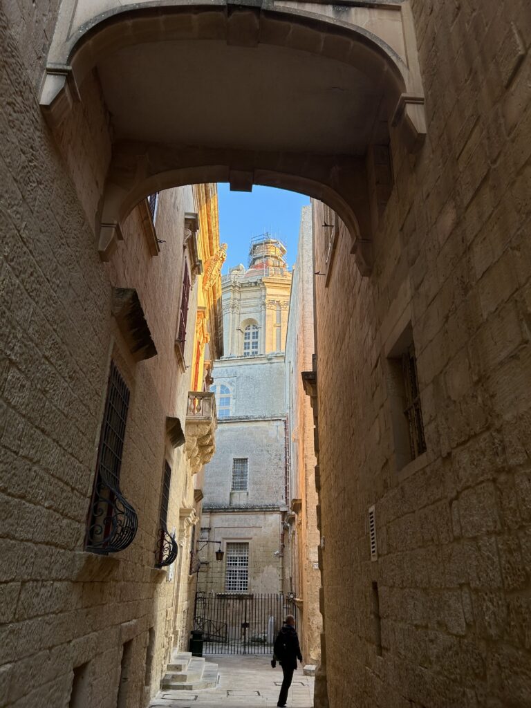 Als wir den dann endlich bekommen haben, sind wir entspannt in Richtung Mdina gelaufen. Mdina, auch „the silent city“ genannt, ist eine der ältesten Städte auf ganz Malta und es ist wirklich sehr still und ruhig da. Wir sind dann ein bisschen durch die Gassen gelaufen und haben die Aussicht von dort genossen. Nach ein bisschen Zeit ist uns dann auch fallen, dass Mdina insgesamt echt nicht groß ist und wir im Prinzip schon alles einmal gesehen hatten.