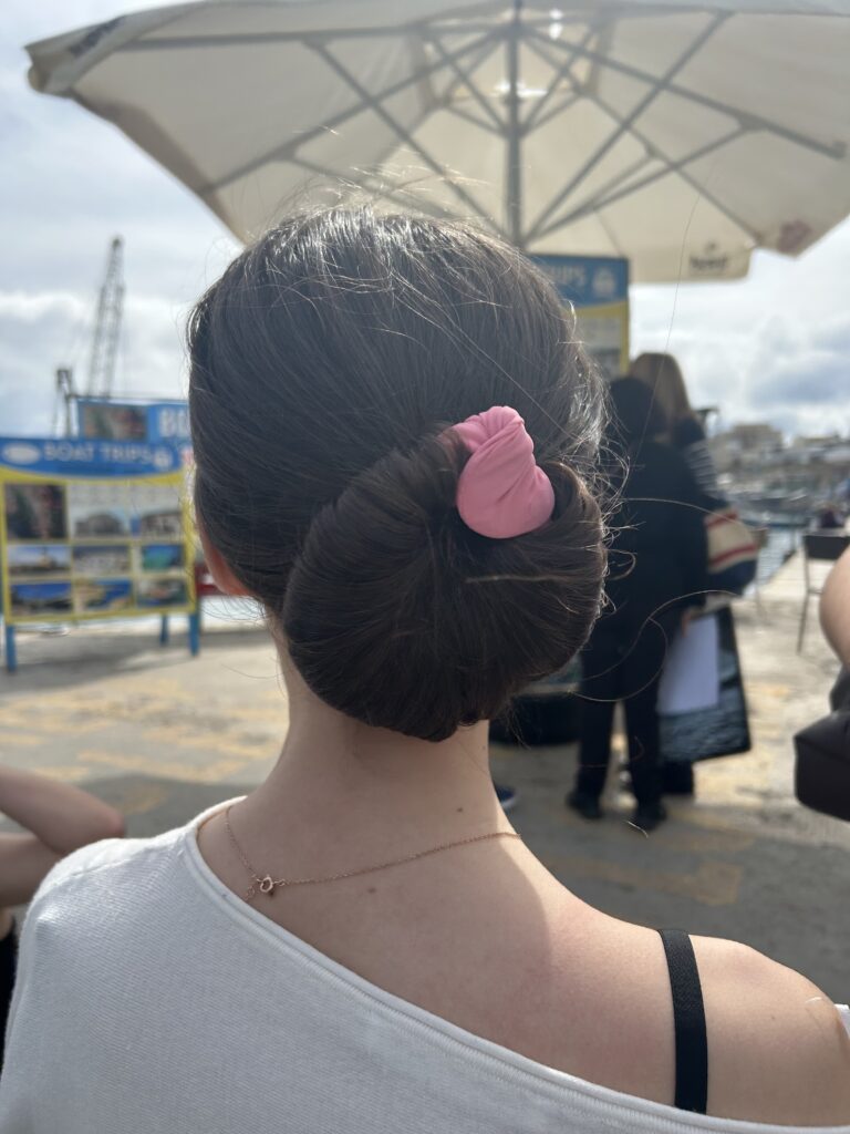 Wir sind an einer Frau vorbei gelaufen, die sogenannte „Not socks“ verkauft hat, mit denen man sich Dutts machen kann. Sie hat das ganze an Lisas Haaren vorgemacht und dann später auch bei mir gemacht. Ich war so beeindruckt davon, dass ich mir ein solches Teil dann auch kaufen wollte und dank der lieben Lea, konnten wir den Preis runterhandeln und jetzt bin ich stolze Besitzerin einer „Not Sock“. Mir wurde dann noch ganz ausführlich die Geschichte ihres Double Dates erzählt und ich sag mal so: ich war geschockt und sehr dankbar dafür, dass ich von keinem solchen Typen angesprochen wurde und nach einem Doppel Date gefragt wurde. Weil Lea und ich beide Hunger hatten, haben wir uns dann jeweils einen Nutella Crepe gekauft und Lea hat die flüssige Schokocreme dann natürlich auch erstmal auf ihre Hose bekommen – super.