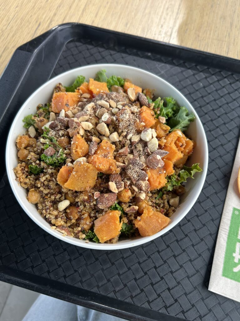 Nach der Schule habe ich dann erstmal ein bisschen zuhause unter meiner Bettdecke gechillt und mich ausgeruht, bevor ich mich auf den Weg gemacht habe. Ich habe mich mit Lea getroffen, weil wir zusammen zu Decathlon gehen wollten um ihr eine ganz bestimmte Hose zu kaufen, die ich mir im Dezember selber in Deutschland zum Tanzen gekauft hatte. Auf dem Weg dort hin bin ich über eine Brücke gelaufen, von der aus man eine große Straße (wenn nicht sogar Autobahn) sehen konnte und da ist mir dann auch aufgefallen wie voll die Straßen hier eigentlich sind. Das ist ein Problem, das die Locals immer wieder selber ansprechen und das ist auch der Grund, weshalb öffentliche Verkehrsmittel für Einwohner kostenlos sind, weil sich die Regierung damit erhofft den Verkehr entlasten zu können (wenn mehr Leute den Bus nehmen und nicht selber mit eigenem Auto auf der Straße fahren). Dort angekommen wo ich hinwollte habe ich dann Lea getroffen und weil ich irgendwie noch voll Hunger an dem Tag hatte sind wir zusammen zu Eeet Well gegangen wo ich mir eine Bowl gekauft habe uns sie sich einen Smoothie gekauft hat. Meine Bowl war echt gut (außer die trockenen Salatblätter) und mir ist auch da mal wieder aufgefallen, wie sehr ich gesundes Essen und auch so einfach essen mit Gemüse drin vermisse. Hier bekomme ich meist nur Fleisch, irgendwas mit Kartoffeln (meistens Pommes), kalte Bohnen und dann noch mehr Fleisch..  Tja, eine der Sachen, die ich von Zuhause komplett vermisse.