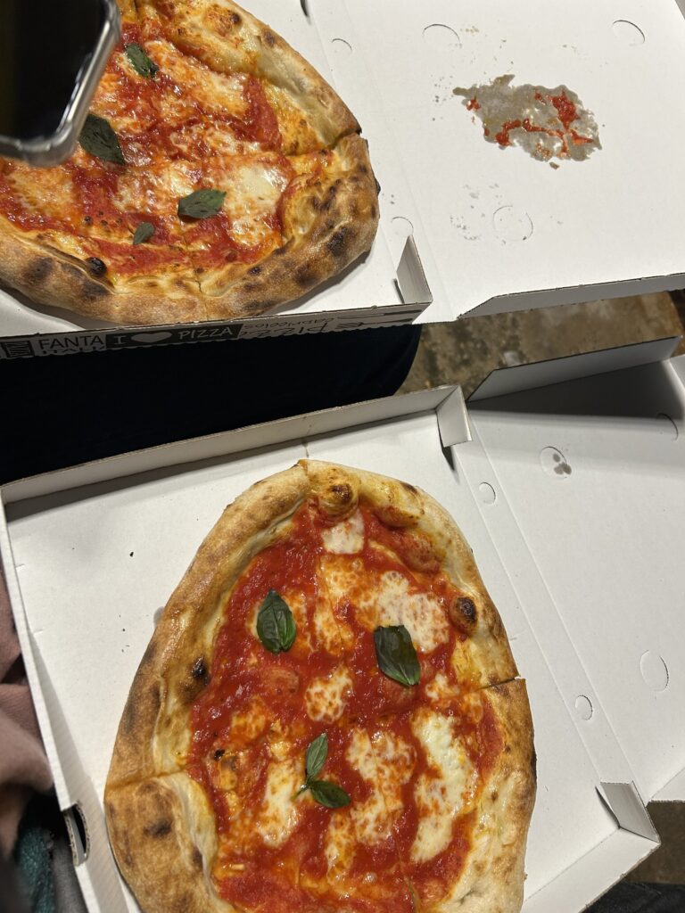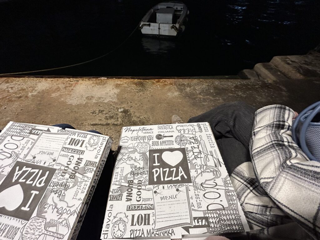 Als wir dann auf Comino angekommen sind haben wir direkt nach Toiletten gesucht weil ich an dem Tag schon fast einen ganzen Liter getrunken hatte. Als wir dann die Toiletten gefunden haben und es geschafft habe die ewig lange Schlange an Menschen zu besiegen haben ich und Lea und dort noch jeweils unsere Bikini Unterteile angezogen und dann sind wir auch schon wieder Richtung Strand gelaufen. Wir haben uns dann (weil es auch schon 12 Uhr war) alle Pizzas gekauft und natürlich zusätzlich noch eine Cola Zero. Es war echt beeindruckend wie viele Touristen (uns natürlich eingeschlossen) nach Comino kommen, schon als wir mit dem Boot angekommen haben wir unfassbar viele Leute gesehen, die entweder auch gerade erst ankamen oder die schon auf der Insel rumgelaufen sind. Am Strand angekommen haben wir uns dann 3 Liegen geschnappt und nebeneinander gestellt (für die wir für 2 Stunden 7 Euro bezahlt haben) und haben uns in unseren Bikinis, der Pizza auf dem Schoß, der Cola in der Hand und mit der Sonne auf der Haut hingesetzt und entspannt.