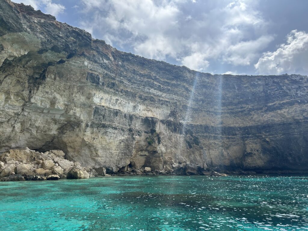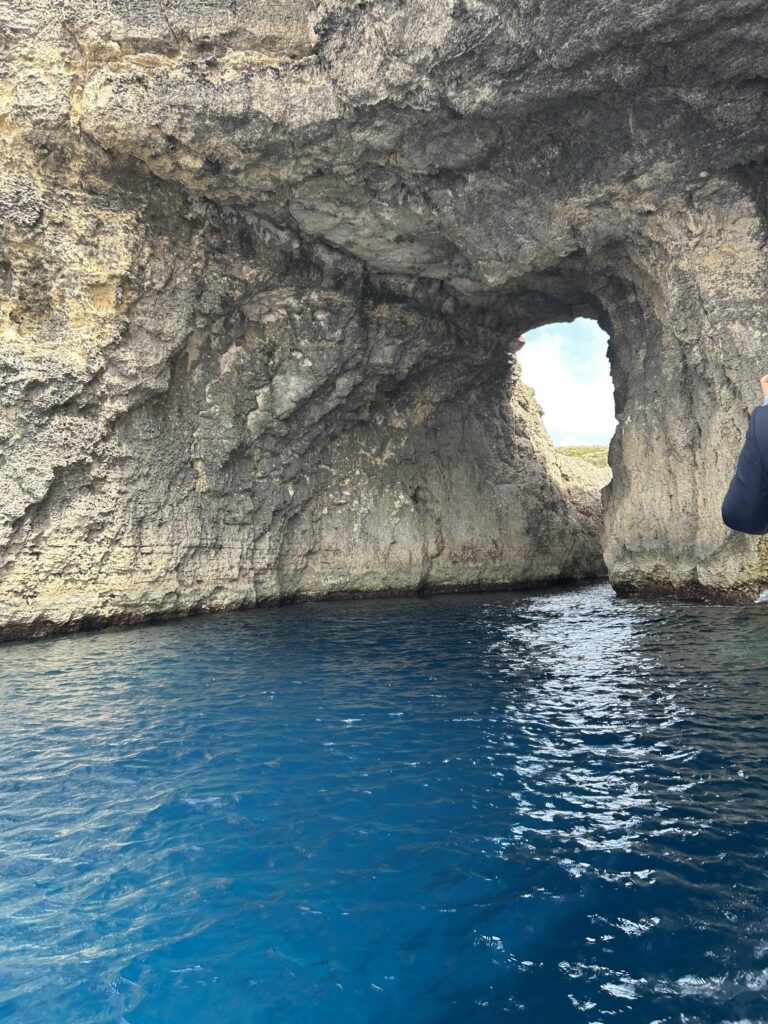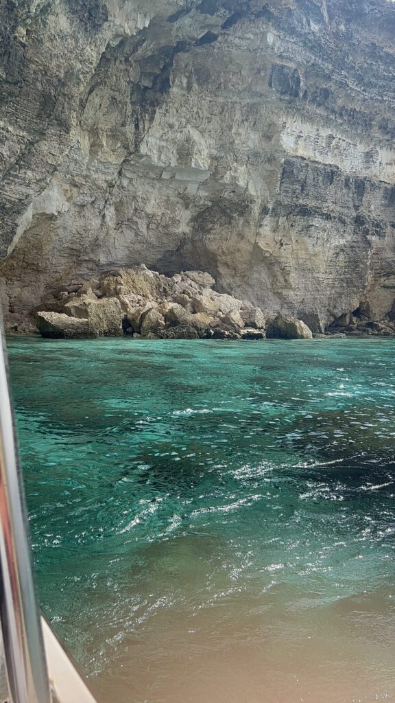 Am Samstag sind wir „früh“ los, weil wir nach Comino gegangen sind und möglichst viel Zeit dort verbringen wollten. Während der Busfahrt waren wir alle noch ein bisschen müde und nach 2 Stunden Busfahrt kamen wir endlich bei der Fähre an. Die Fahrt nach Comino hat glatte 15 Euro gekostet und dieses Boot kann man gar nicht wirklich als Fähre bezeichnen. Die Fahrt war ✨aufregend✨.. Im Preis inklusive war auch noch eine Art Höhlen Tour, bei der wir so gut wie es ging an und in die Höhlen gefahren wurden. Ich kann gar nicht in Worte fassen wie sprachlos ich auf dem Boot Stand, nachdem ich das kristallklare, türkise Wasser zum ersten Mal gesehen hab. Es war unglaublich schön und ich hab mich gefühlt als sei ich im Paradies gelandet.