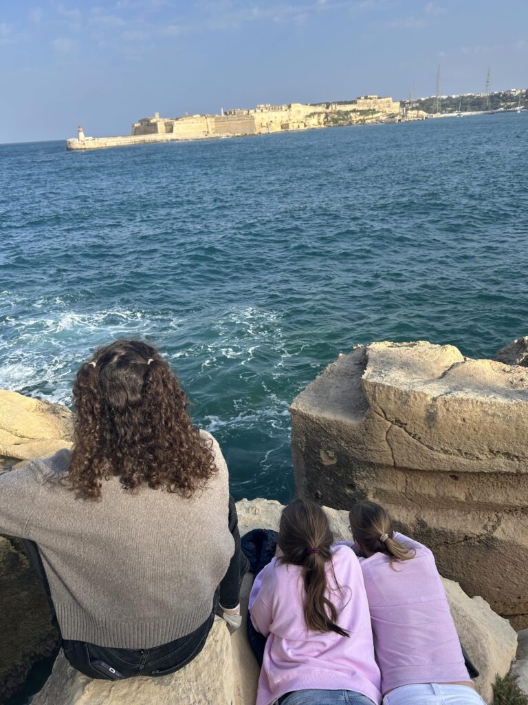 Nach dem Brunchen sind wir in den Spar gegangen um uns dort jeweils was zu trinken zu kaufen und danach sind wir zu Felsen am Rand von Valletta gelaufen um uns dort ein wenig hinzusetzten. Das Wetter war zu dem Zeitpunkt bombastisch gut und die Sonne hat uns ins Gesicht geschienen. Wir haben uns dort dann hingelegt, den Wellen zugehört und ein bisschen die Augen zu gemacht. Nach einer Weile hat Lea uns dann ihr super Talent gezeigt: sie kann jedes beliebige Lied perfekt Pfeifen.
